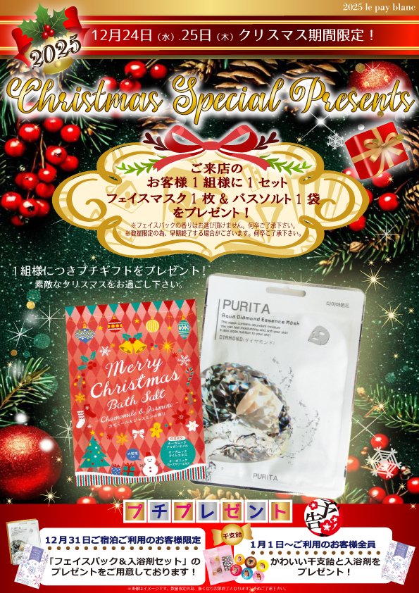 12/22~25日にご利用のお客様へプチギフトをプレゼント!